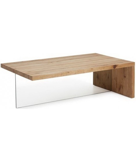 Bedeutender Couchtisch mit Platte aus massiver Eiche natur und elegantem Mittelfuß aus gehärtetem Glas, widerstandsfähiger als gewöhnliches Glas. Es richtet mit Geschmack ein und verleiht allem, was es umgibt, Wert und Prestige. Schön, elegant, sauber und geradlinig.