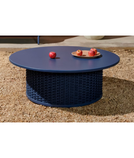 SORRENTO Couchtisch Ø 99 cm aus Aluminium und Seil in blaue für die Terrasse im Hausgarten