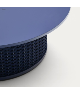 Fabelhafter Couchtisch, der jedem Raum einen Hauch zeitlosen Charme verleiht. Hergestellt mit einem blaue Aluminiumrahmen und handgeflochtenem Kunstrattan. Ein charmanter Stil, der durch sein leichtes und zeitgenössisches Design besticht. Geeignet für den Außen- und Innenbereich, ideal für Garten oder Terrasse.