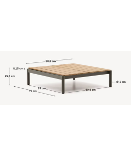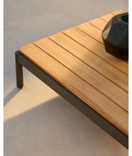 Couchtisch im minimalistischen Design aus zwei äußerst wetter- und UV-beständigen Materialien: mit einer Aluminiumstruktur, die in lokalen Werkstätten hergestellt wird, wodurch der CO2-Ausstoß reduziert und die Umweltbelastung verringert wird, und einer Tischplatte aus massivem Teakholz. Widerstandsfähig, langlebig, besonders für den Außenbereich geeignet. Für Haus, Garten, Balkon oder Terrasse, aber auch für Wohnhäuser, Strandgrundstücke, Hotels, B&Bs, Strandresorts. Elegant und raffiniert. Auf dem Foto des technischen Datenblatts sind alle Maße angegeben. Weiteres Zubehör passend zur gleichen Linie finden Sie weiter unten.
