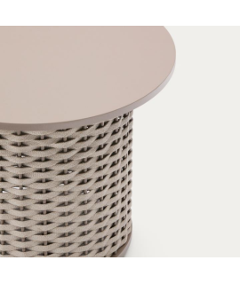LONDON Couchtisch Ø 50 cm aus Aluminium und Seil in Taubengrau für die Terrasse im Hausgarten