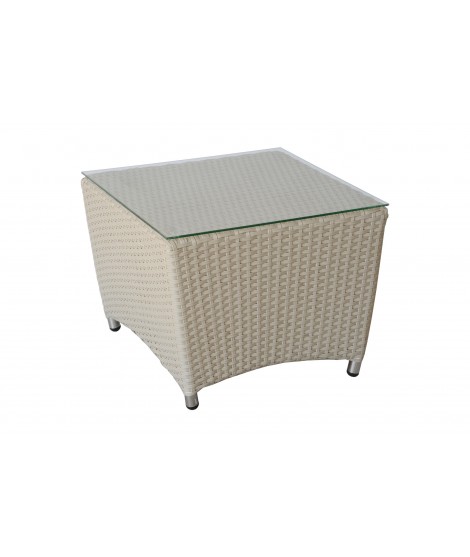 Schön, elegant und sehr klein passt überall gutRahmen in Wicker-Weberei synthetische in den Farben Weiß, grau und taupe. Fuß aus Aluminium und Glasplatte. Perfekt für die Dekoration, das äußere und das Innere des Hauses. Noch besser auf die Couch und passender Sessel abgestimmt. Größe 50 x 50 x 40 h cm.