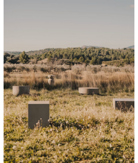 Couchtisch aus Beton, praktisch und sehr widerstandsfähig, mit modernem Design, geeignet für den Außenbereich, Garten oder Terrasse. Eine einfache, saubere und Designlinie mit großer Beständigkeit.