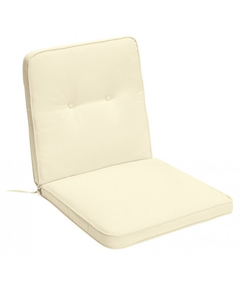 Kissen aus unifarbenem ecrufarbenem Polyestergewebe mit Paspeln und Doppelnähten, das jeden offenen Raum elegant einrichtet, praktisch und sehr widerstandsfähig ist. Perfekt, um Ihre Gartenmöbel zu ergänzen. Mit einer klaren und nüchternen Linie eignet es sich für einen niedrigen Sessel mit Rückenlehne cm 53 h.
