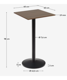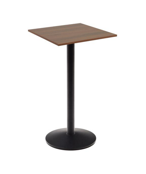 ZULU hoher Tisch 97 cm platte 60x60 cm aus Melamin Walnuss Finish und schwarz lackiertem Metallgestell Bars und Restaurants