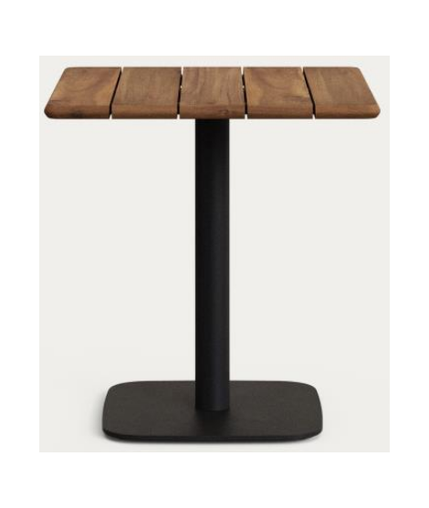 Praktischer und raffinierter Tisch. Hergestellt aus einer runden Säule und einem quadratischen Sockel aus schwarz pulverbeschichtetem Metall. Quadratischer Grundriss aus massivem Akazienholz mit Walnuss-Finish, Höhe 3 cm. Geeignet für den Außen- oder Innenbereich, zu Hause oder in Bars, Geschäften, Eisdielen, Cafés, Restaurants, Strandlokalen, Hotels und Strandresorts. Der Tisch ist an der Unterseite mit verstellbaren Füßen zum Nivellieren ausgestattet, falls der Boden dies erfordert, um die Stabilität zu gewährleisten. Alle Maße im technischen Datenblattfoto durch Scrollen mit dem Pfeil in den Fotos.