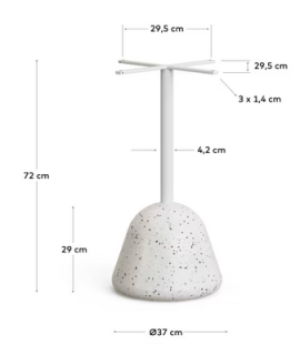Ein schöner, eleganter und vielseitiger Tisch, geeignet für Zuhause oder die Bar. Hergestellt mit Weiß pulverbeschichteter Stahlsäule und Betonsockel. Mit einer sehr praktischen Platte aus venezianischem Terrazzobeton. Jedes Stück ist exklusiv und hat einzigartige Farbtöne. Ideal für Bars, Cafés, Eisdielen, Restaurants, Clubs, Hotels, Bauernhöfe, Strandresorts. Sehr langlebig, für den Außen- und Innenbereich geeignet. Mit Gummifuß zum Schutz des Bodens.