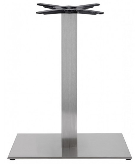 • Quadratische Säule 8 x 8 cm, aus satiniertem oder poliertem Edelstahl Stahl. Die Basis ist 73 cm hoch und die Bodenplatte ist rechteckig aus Gusseisen mit den Maßen 60 x 40 cm, mit Unterbodenballast oder mit festen Füßen. Geeignet für Platten bis 140x90 cm. Tischgestell für Bars, Eisdielen, Cafés, Restaurants, Clubs, Hotels, Badeanstalten. Bügel zur Befestigung an der Platte aus Gusseisen. Auch mit 109 cm Höhe erhältlich.