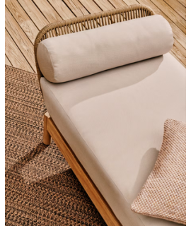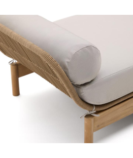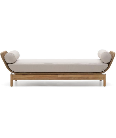 Wunderschöne Daybed Chaiselongue mit frischem und raffiniertem Design. Eine romantische Linie und ein charmanter Kolonialstil, der zum Träumen einlädt. Hergestellt aus massivem Akazienholzrahmen und UV-beständigem gewebtem Polyesterseil. Alle Kissen inklusive, aus wasserabweisendem und abnehmbarem Stoff. Charmant und köstlich, wird es Sie mit seiner Ästhetik, seinem Komfort und seiner großen Widerstandsfähigkeit überzeugen, ideal für offene Räume.