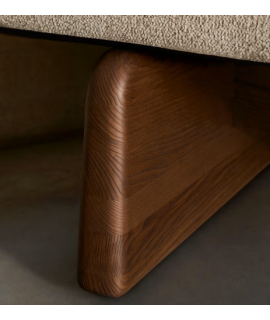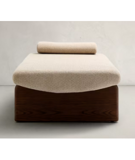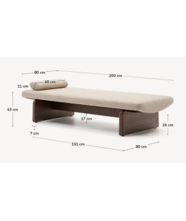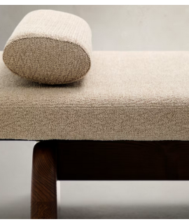 NOELLE Chaiselongue Bett aus massiver Esche mit Walnuss Finish und Chenille Kissen inklusive
