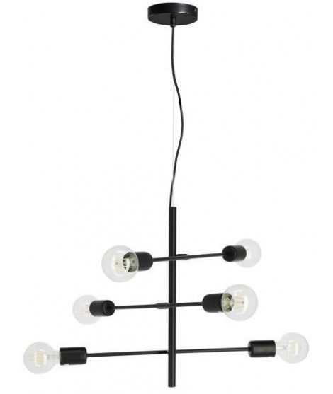 Hängelampe, die sich durch ihre Ästhetik und Verarbeitung an jedes Dekor anpasst und die Atmosphäre schafft. Mit 6 Lichtern und Gelenkarmen, schwarze Metallstruktur. Lampen nicht im Lieferumfang des großen Typs E 27 enthalten: geringer Verbrauch oder Energieeinsparung, LED oder Glühlampe. Energieklasse A ++ Geeignet für Haus oder Vertrag.