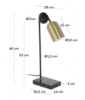 schöne Tischlampe aus schwarzem und goldenem Metall. Beleuchtung für Lampe (nicht im Lieferumfang enthalten) mit großem E27-Anschlusstyp: geringer Verbrauch oder Energieeinsparung oder LED oder Glühlampe. Alle Maße auf dem Foto des technischen Datenblatts.