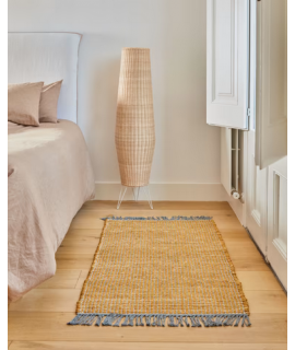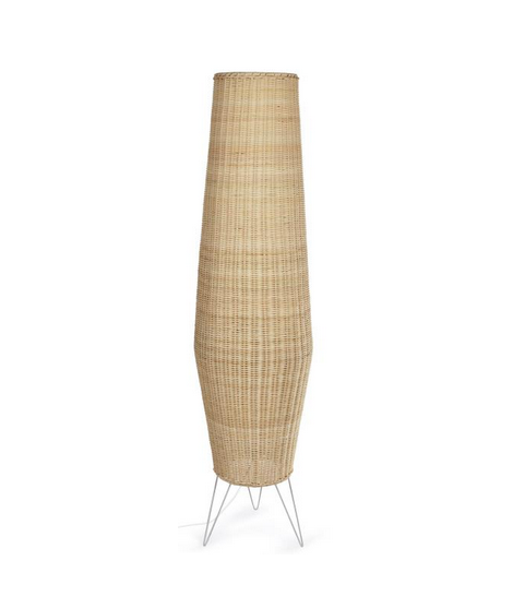 Wunderschöne Stehlampe im exotischen Stil. Lampenschirm aus natürlichem Rattan. Eine fesselnde Linie, die sich von den üblichen Lampen abhebt.