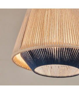 Wunderschöne Leuchter mit Struktur aus lackiertem Metall und Lampenschirm aus handgeflochtenem Naturseil in Blau, Beige und Grün. Angeordnet für Lampe (nicht im Lieferumfang enthalten) mit großem E27-Anschluss und Typ: niedriger Verbrauch, LED oder Glühlampe. Alle Maße sind auf dem Foto des Datenblattes.