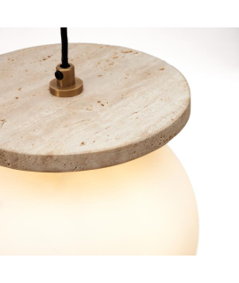 PATTY Deckenleuchte aus Travertin und Milchglaskugel Design