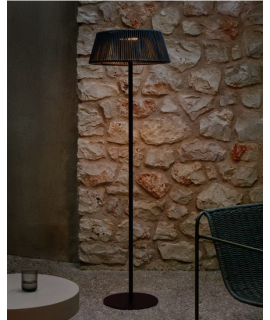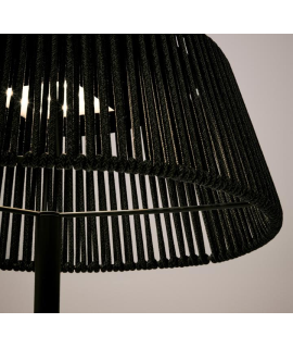 Eine einzigartige tragbare Solar-Stehlampeim eleganten Ethno-Stil, ein Einrichtungsaccessoire aus lackiertem Metall und Seil, Farbauswahl. Ein raffiniertes Genre mit einem starken und charaktervollen Design. Ein charmanter rustikaler Kolonialstil.