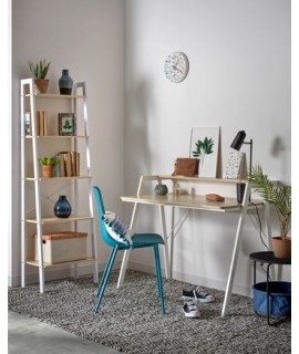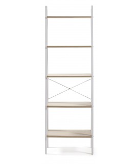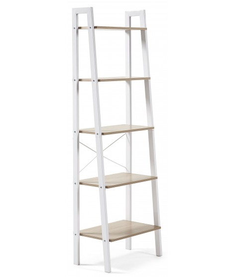 Wunderschönes Bücherregal in Form einer Leiter mit fünf Regalen aus MDF mit grauer Eiche und Struktur aus weiß lackiertem Stahl mit Kippschutzscharnieren für mehr Stabilität und Sicherheit. Wunderbar für seine saubere und raffinierte moderne Linie, praktisch für die Lagerung. Auf ZUBEHÖR passt der Schreibtisch.