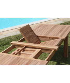 Fabulous erweiterbarer Tisch mit internen Erweiterungen, komplett in Teakholz. Ein robuster und solider Tisch, der mit UV-Schutz nach PNZ-Öl behandelt wurde und für den Außenbereich geeignet ist. In regelmäßigen Abständen mit dem entsprechenden Teaköl geschützt werden. 3 cm starke Tischplatte. Bein mit quadratischem Querschnitt 8x8 cm. Edelstahlschrauben. Erhältlich in drei Größen.
