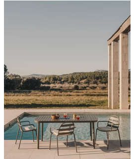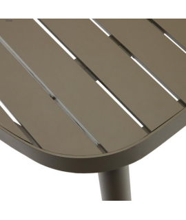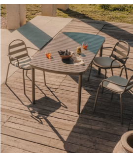 Tisch aus taubengrünem Aluminium, sehr widerstandsfähig gegen Witterungseinflüsse und UV-Strahlen, mit einer frischen und intimen Linie, die Ihrer Innen- oder Außenumgebung Raffinesse und Prestige verleiht. Einfach und Design, mit Lattenrost. Wunderbar und vielseitig, geeignet für zu Hause, aber auch perfekt für Bars, Eisdielen, Cafés, Restaurants, Clubs, Hotels, Badeanstalten, Chalets, Bauernhäuser. Nachfolgend finden Sie die passenden Stühle.