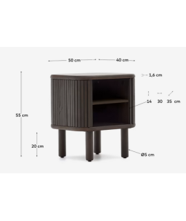 AFRO Nachttisch 50x55h cm mit 2 Schiebetüren aus Esche dunkles Finish mit Lamelleneffekt