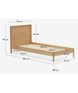 Faszinierendes und besonderes Einzelbett, das auf ein elegantes Design setzt. Aus Eichenfurnier, ausgezeichneter Lattenrost mit den Maßen 90x190 cm. Geeignet für alle Arten von Möbeln, von klassisch bis modern. Unter den Ergänzungen der gleichen Zeile passend. Alle Maße finden Sie auf dem Foto des technischen Datenblatts.