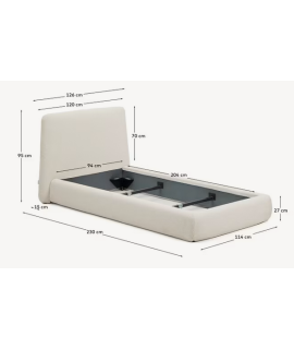 Mit einem innovativen Design, Einzelbett mit einer süßen Linie. Aus ecrufarbenem chenillestoff. Ein harmonischer und raffinierter Einzelbett. Nachfolgend finden Sie die passenden Accessoires aus der gleichen Linie. Alle Maße finden Sie auf dem Foto des technischen Datenblattes.
