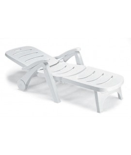 Schöne und bequeme Outdoor-Sonnenliege mit Armlehnen, STAPELBAR. Erstellt mit einem Augenmerk auf rein italienische Qualität, sowohl bei den Materialien als auch bei der Konstruktion. Komplett aus weißem oder waldgrünem Technopolymer. Rückenlehne in 5 Positionen verstellbar und zwei Hinterräder zur Erleichterung der Bewegung. Mit einer einfachen Geste verwandelt er sich in einen bequemen Sessel. Stapelbar.