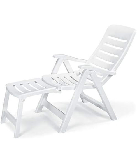 Schöne und bequeme Outdoor-Sonnenliege mit Armlehnen, umwandelbar in einen Sessel, 5-fach verstellbare und klappbare Rückenlehne. Hergestellt mit Aufmerksamkeit für rein italienische Qualität, sowohl bei den Materialien als auch bei der Konstruktion. Komplett aus weiß oder waldgrün Technopolymer.