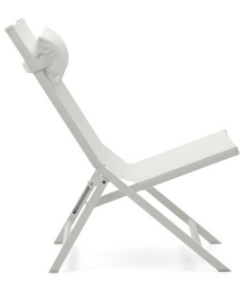 Charmanter und raffinierter klappbarer Entspannungs-Loungesessel aus matt weißer lackiertem Aluminium und weißer Textilgewebe. Ideal zum bequemen Entspannen im Garten, am Pool oder auf der Terrasse. Elegant und Design.