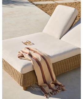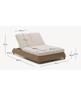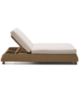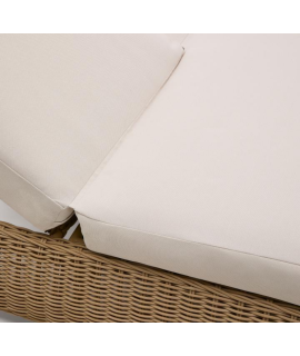 Faszinierender und eleganter Stil für diese Doppelte Sonnenliege mit einer Struktur aus synthetischem Rattan mit natürlichem Finish, widerstandsfähig für den Außenbereich, mit einem Kissen aus wasserabweisendem, porösem Stoff für schnelles Trocknen, um zusätzlichen Komfort zu gewährleisten. Abnehmbar und waschbar. Füße aus massivem Akazienholz. Bequem und angenehm. Ideal zum Kombinieren mit anderen Accessoires der gleichen Linie, um sowohl Innen- als auch Außenbereiche stilvoll einzurichten. Auch geeignet für die Einrichtung von Bauernhäusern, B&Bs und Residenzen im luxuriösen Stil.