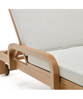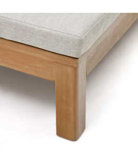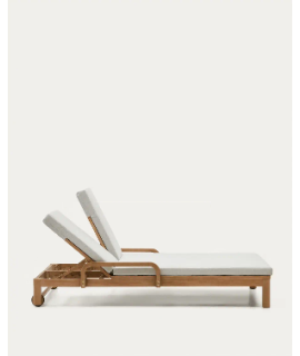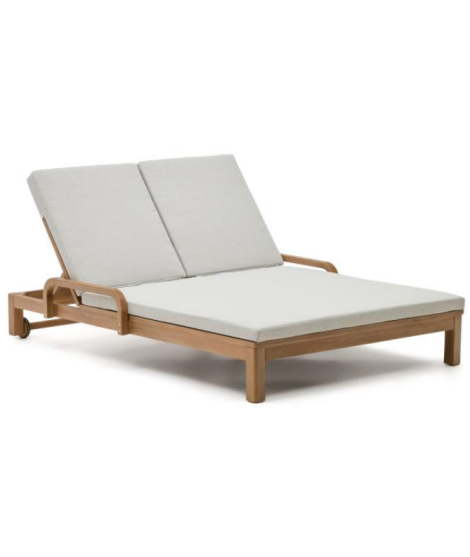 Wunderschöne Doppelte Sonnenliege aus massivem Eukalyptusholz, das in einem umweltfreundlichen Verfahren gewonnen wird, bei dem die Bäume diszipliniert und verantwortungsvoll gefällt werden. Und außerdem einer Behandlung unterzogen, um ein besseres Finish und eine bessere Konservierung zu gewährleisten. Dank der bequemen Rollen lässt es sich leicht bewegen. Die Kissen sind im Lieferumfang enthalten, aus wasserabweisendem Stoff und abnehmbar. Die Möbel dieser Linie verleihen Ihren Räumen eine warme und elegante Ausstrahlung. Ein Hauch von Raffinesse und Eleganz für Ihre Umgebung. Alle Maße sind auf dem Foto des technischen Datenblatts zu finden.