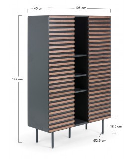 Eleganz und Raffinesse in einem Schrank für eine klassische und moderne Umgebung. Design und Stärke, vermittelt durch die Wärme des Nussbaumholzes, das perfekt zum mattschwarz lackierten MDF-Holz passt. Diese Mischung aus zwei Farben schafft ein bestimmtes Genre, phantasievoll und raffiniert. Ein zeitloser Charme wird in diesem wunderbaren Glauben genossen.