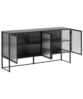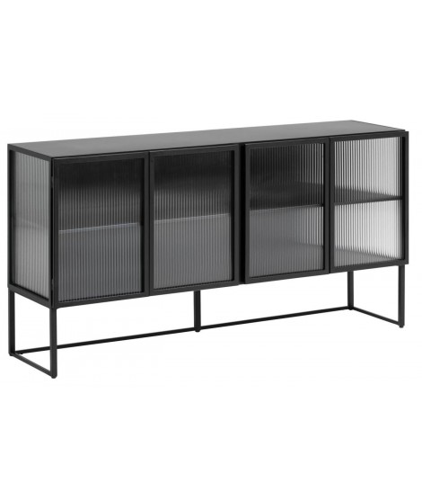 LEE 160 cm Sideboard aus schwarzem Metall und gehärtetem Glas