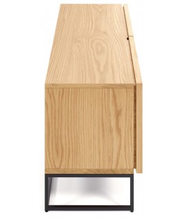 Wesentliches und kleines Sideboard oder TV-Gehäuse, jedoch ohne Einbußen bei Funktionalität und Aufbewahrungsfläche. Die klare Linie und die Natürlichkeit des Holzes sorgen für ein minimalistisches Design und ein nüchternes und dynamisches Aussehen. Aus Eichenholz, mit zwei Türen und einem angenehmen Reliefrahmen, der es umreißt. Starke und robuste Struktur.