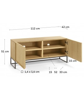 TV-Schrank oder kleines Sideboard mit einladendem und modernem Design. Aktuell, aber ohne die Werte der Vergangenheit zu vergessen. Ein unverzichtbarer Look, der gut auf neue Einrichtungsbedürfnisse reagiert. Aus natürlichem Eichenholz mit 2 Türen und Kabelloch. Für ein modernes, ethnisches, nordisches, Vintage- oder Industriehaus. Nachfolgend finden Sie das gesamte Zubehör dieser Linie. Auf dem Foto des technischen Datenblatts alle Maßnahmen.