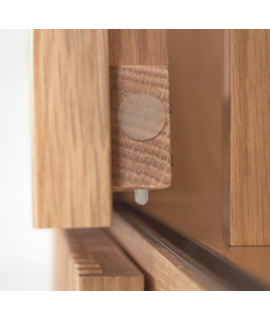 Schönes und raffiniertes Sideboard, strukturiert in massiver Eiche und Eichenfurnier, Massivholzfüße mit Kunststoffösen zum Schutz des Bodens. Wenn Nützlichkeit und guter Geschmack zusammenkommen und einem fabelhaften Sideboard Leben einhauchen, das sich in jeder Art von Möbel hervorheben kann. Unter den Accessoires der gleichen Linie passend. Alle Maße sind auf dem Foto des Datenblattes.