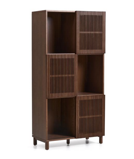Ein raffiniertes Sideboard im angenehmen Kolonialstil mit edlen handgefertigten Lamellen, die in Kombination mit der Wärme des nussbaumfarbenen Eschenholzes ein zeitloses Design verleihen. Ein praktisches und charmantes Sideboard.