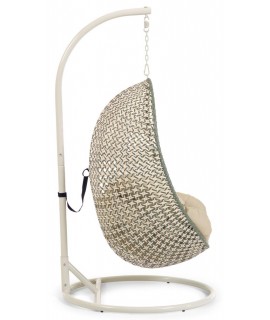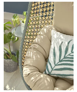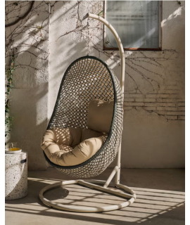 AUSTIN Hängesessel mit Fuß aus gewebtem Rattan mit Kissen für drinnen oder draußen