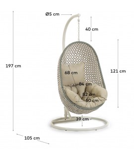 Mit der charakteristischen kolonialen Essenz bietet dieser hängende Sessel mit Sockel aus handgewebtem Rattan mit abnehmbaren Kissen. Auch auf der Terrasse garantiert es den Komfort Ihrer Entspannung drinnen und draußen. Auf dem Foto des technischen Datenblatts sind alle Maßnahmen angegeben.