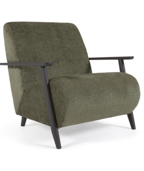 CIZAN Sessel aus Chenille und Eschenholz Wengé Finish im nordischen Stil