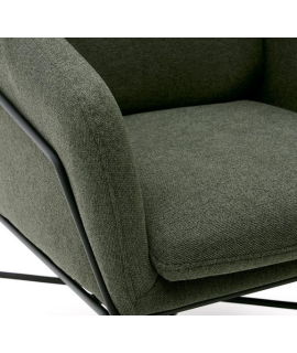 Ein faszinierender, essentieller Geschmack für diesen Sessel mit einer innovativen und modernen Linie. Er ist schön und praktisch, mit einem bequemen, dicken Sitz und einer gepolsterten und mit grünem Stoff bezogenen Rückenlehne sowie einer wunderschönen schwarzen Metallstruktur.