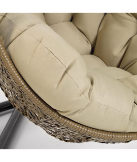 SOLO Hängesessel aus geflochtenem Rattan mit Stahlrahmen und Kissen inklusive für den Innen und Außenbereich
