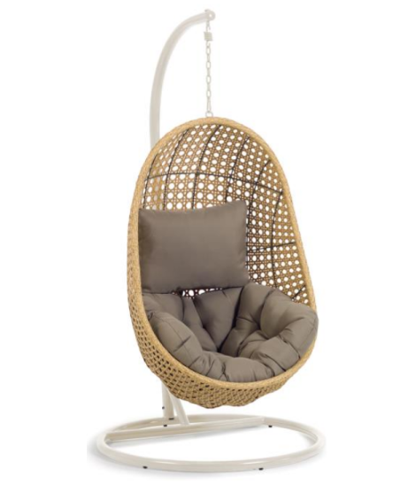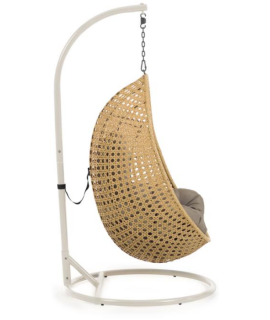 ALMA Hängesessel aus geflochtenem Rattan mit Stahlrahmen und Kissen inklusive für den Innen und Außenbereich