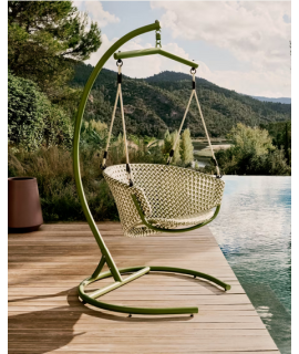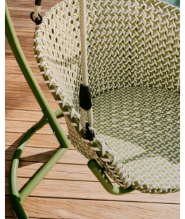 Bezaubernder Hängesessel aus handgeflochtenem Rattan, mit abnehmbaren Kissen und Aluminiumrahmen. Ein überraschendes Sesseldesign, ein modernes Design mit einem exotischen Touch. Eine Ästhetik, die von einem zeitgenössischen Stil inspiriert ist, der sich mit dem Kolonialstil vermischt, um einen innovativen und sehr bequemen Sessel hervorzubringen.