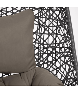 EMILY Hängesessel aus geflochtenem Rattan mit Stahlrahmen und Kissen inklusive für den Innen und Außenbereich