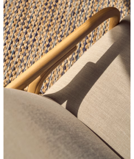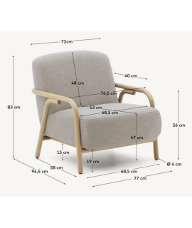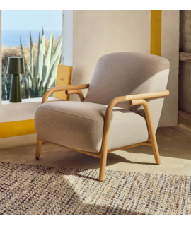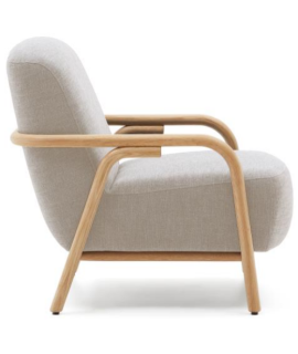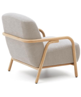 HUNTER Sessel aus beigem schmutzabweisendem Stoff und Struktur aus massivem Natur Eschenholz Wohndesign