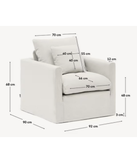 Raffinierter Sessel mit klaren Linien, sehr bequem und einladend. Mit stabiler Holzstruktur und Schaumstoffpolsterung, weicher Sitzfläche und Bezug aus Baumwoll-Leinen-Mischgewebe, komplett abnehmbar und waschbar. Inklusive zwei Kissen. Maximale Belastung: 130 kg. Hergestellt in Europa mit handwerklichen Verfahren zur Reduzierung der CO2-Emissionen und damit zur Schonung der Umwelt. Nachfolgend finden Sie alle passenden Accessoires der gleichen Linie. Alle Maße finden Sie auf dem Foto im technischen Datenblatt.