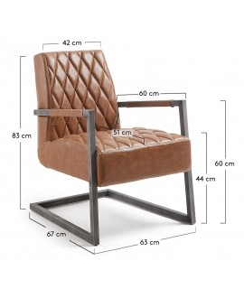 Faszinierender Sessel mit industriellem Vintage-Charme. Um Ihr Zuhause mit einem eleganten Retro-Geschmack zu bereichern. Hergestellt aus gealtertem tabakfarbenem Kunstleder, mit einer besonderen und sorgfältigen Verarbeitung. Sehr bequem, nach einem Arbeitstag ist es angenehm, nach Hause zurückzukehren und sich in einem Sessel dieses besonderen und raffinierten Stils zu entspannen.