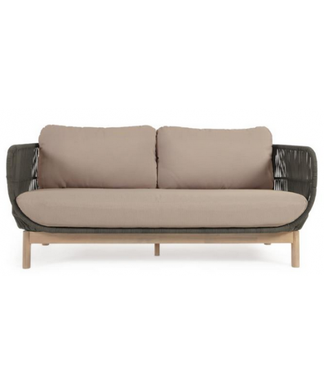 AWARY 3 Sitzer Sofa aus massivem Akazienholz mit Kordelbezug und abnehmbaren Kissen