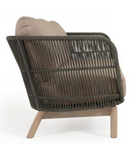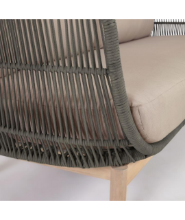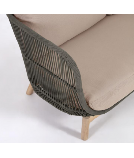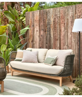3-Sitzer-Sofa mit massiver Akazienholzstruktur, behandelt mit PNZ-Öl für lange Lebensdauer und UV-Schutz, Bezug aus Polyesterseil, beständig gegen UV-Strahlen und schlechtes Wetter, Kissen aus wasserabweisendem Stoff, vollständig abnehmbar und waschbar. Maximale Tragfähigkeit 320 Kg. Siehe unten den Sessel, der mit der gleichen Linie kombiniert werden kann. Auf dem Foto des Datenblatts sind alle Maßnahmen aufgeführt.